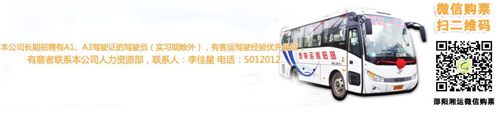 版權(quán)所有:湖南邵陽湘運集團有限責(zé)任公司 聯(lián)系地址:湖南省邵陽市北塔區(qū)魏源路汽車北站 聯(lián)系電話辦公室/傳真:0739-5012598 網(wǎng)站備案號:湘ICP備15017404號-1